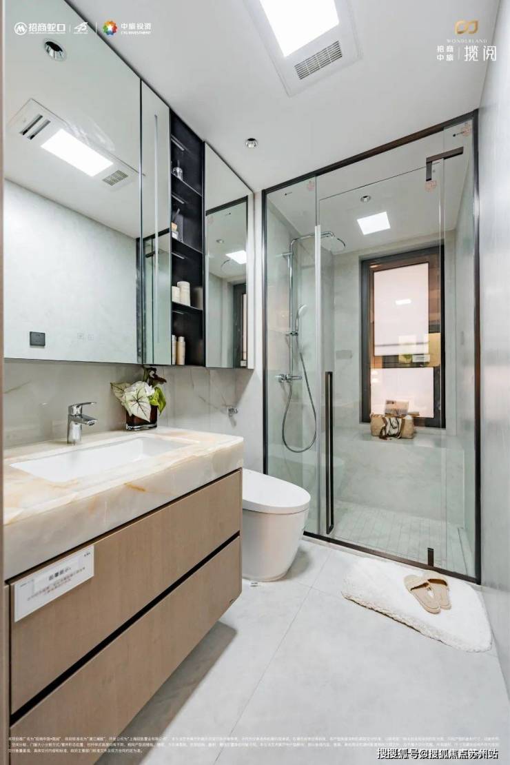 【招商中旅·揽阅】项目主卫洗浴区/坐便区/盥洗区实现分段式干湿分离,起居动线更为合理有序。